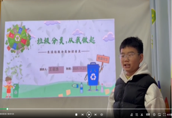 为发挥学生主体作用,让环保理念以更鲜活、亲切的方式传递,我校选拔并培育“小小宣讲员”队伍,开展了系列垃圾分类主题宣讲活动。小宣讲员们以童声传理念、以行动践环保,在校园、家庭、社区中搭建起垃圾分类知识传播的桥梁,取得了显著成效。